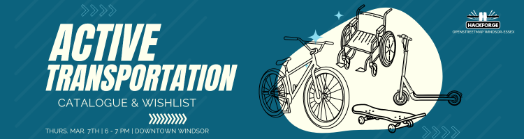OSM Windsor-Essex wants to explore where this infrastructure already exists in the region, and then daydream about the possibilities for improving it! We’ll start by gathering attendee input on where existing infrastructure is currently missing from the dataset, and will then create a map that shows where we would like to see additions and improvements. The Wishlist Map will then be made available on the Hackforge website.